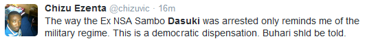 But there are other conspiracies as well.Some are suggesting,Dansuki has evidence to bring down the APC,after fraudulent practises at the last election,and that is why he is being arrested...Well,there is even more,but i would leave you to read some of these texts below by Nigerians on the Sambo Dasuki arrest and make up your own minds...after the cut
