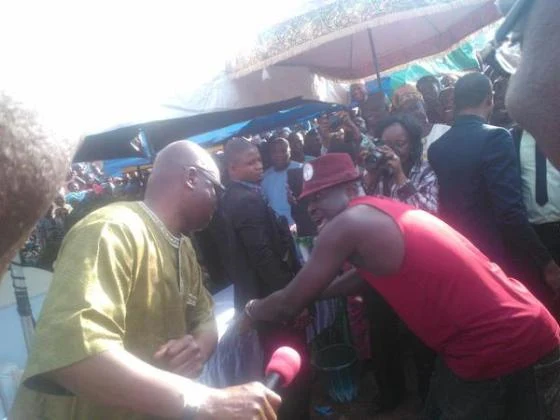 Gov Ayo Fayose of Ekiti was seen dancing with his people at Ikere Ekiti today,where he attended the ground breaking ceremony of Ultra Mordern Elegberun Market.Well ,someone said its all good ,but how does that affect the price of Garri in the market? Which i found quite funny,but i say we all need a bit of light relief at certain times,a smile or a burst of laughter goes a long way! Free Fayose,make he dance..He's the man of the people1 Another pic after the cut..
