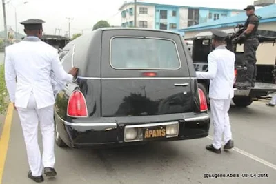 | Alamiyeseigha coffin arrives at his funeral service. |